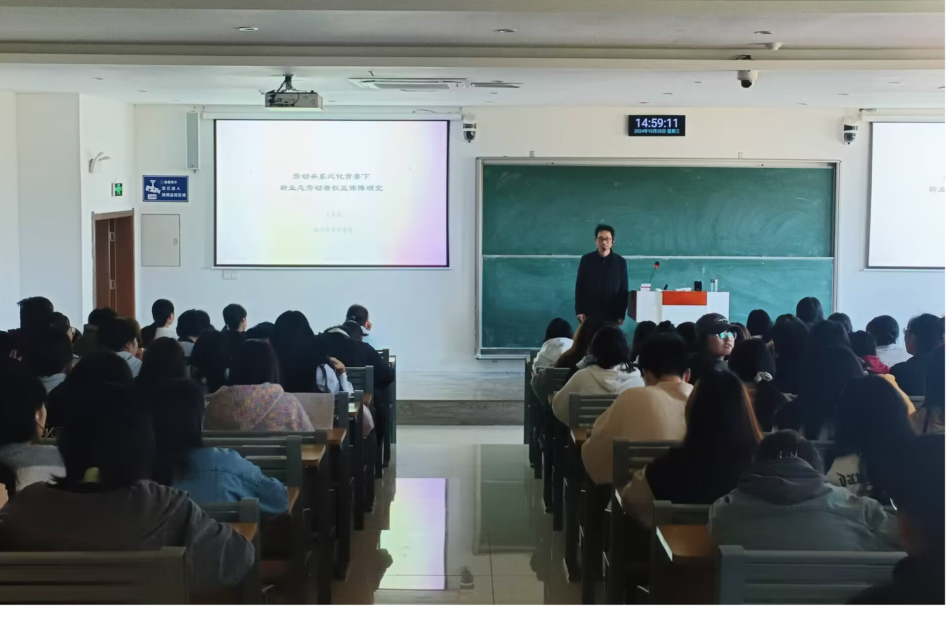 10月30日下午,商学院(法学院)王来宾副教授在公共教学楼北阶301教室作题为“劳动关系泛化背景下新业态劳动者权益保障研究”的学术报告,人力资源管理专业约150名学生参加了报告会。报告会由2022级人力资源管理班学习委员朱子慧同学主持。