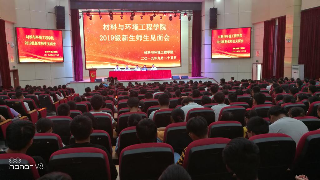 9月25日下午,材料与环境工程学院在博古楼礼堂隆重召开2019级新生师生见面会,学院党委书记何贵林、副院长陈建兵、科级以上干部、教研室主任、教师代表、辅导员代表以及全体2019级新生参加了会议,会议还邀请了原科技处长杨小红教授、图书馆馆长汪新教授出席见面会,副院长汪鹏飞主持会议。