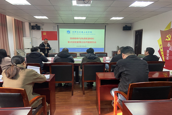 3月8日下午,材料与环境工程学院在三楼会议室召开微纳粉体与先进能源材料重点实验室博士后开题报告会,会议由院长吴国志主持。