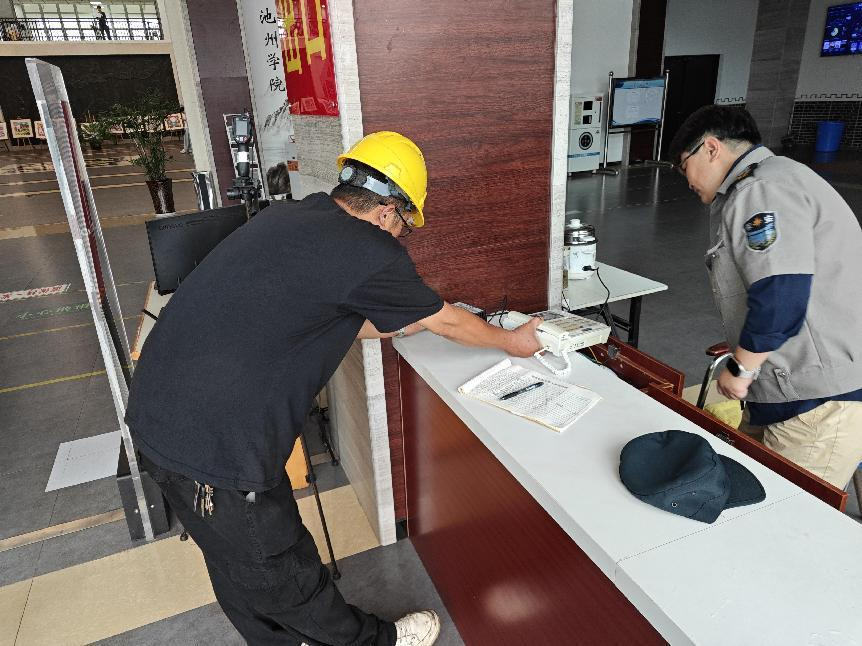 时值第23个全国“安全生产月”,6月28日上午,池州市马衙市场监管所检查组一行来beat365官网检查指导电梯安全运行工作,保卫处相关工作人员陪同检查。