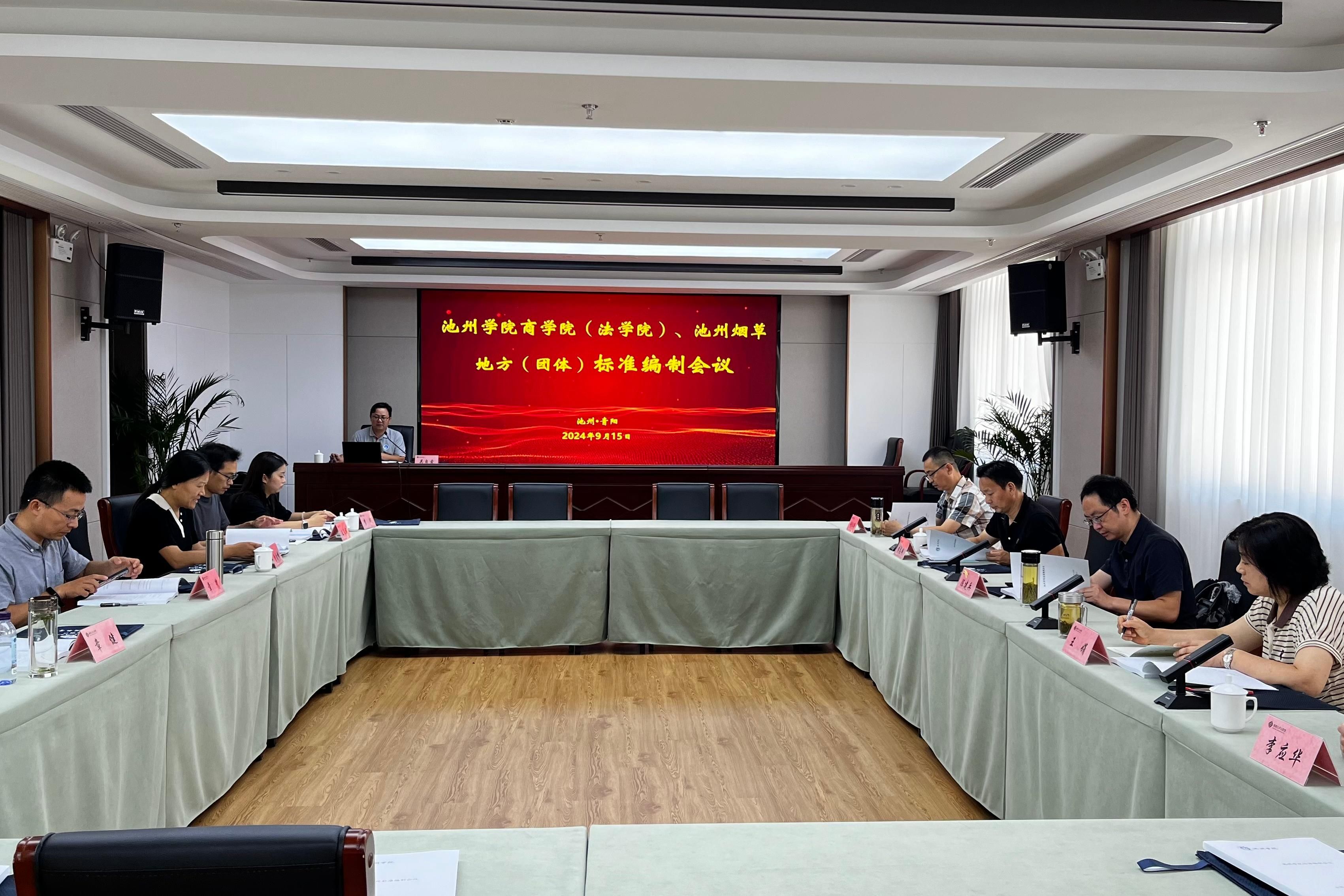 9月15日至16日,商学院(法学院)联合池州烟草召开标准编制会议。校人事处处长陈建兵、保卫处处长王娟、商学院(法学院)院长吴自爱、教务处副处长李应华、池州市市场监督局计量科科长李志成、池州烟草高级工程师舒仁伟,商学院(法学院)部分教师参加活动。