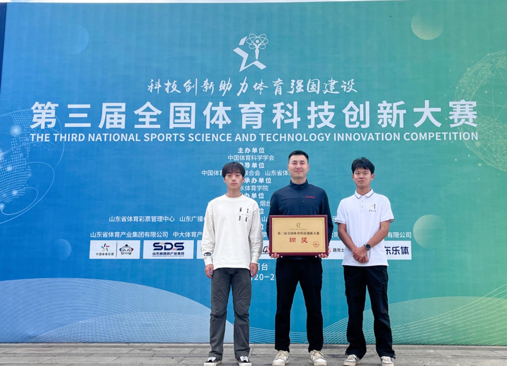 9月19日至21日,由中国体育科学学会主办,山东体育学院、烟台市人民政府、山东体育科学学会联合承办的第三届全国体育科技创新大赛决赛在山东省烟台市烟台南山国际博览中心举行。体育学院王俊杰、杨子旭两位同学斩获铜奖(指导教师:赵永兴),充分展现了beat365在线唯一官网登录学子的青春风采。