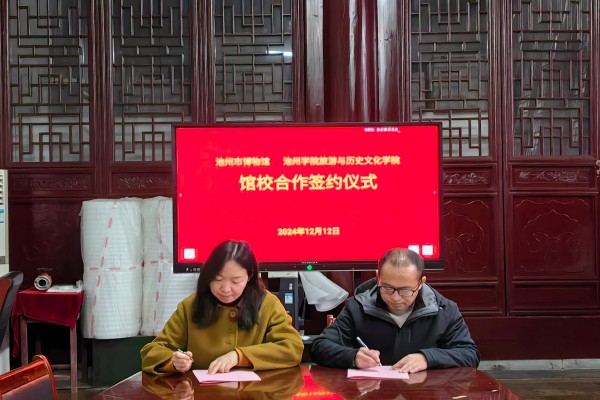 为深入贯彻落实习近平文化思想和习近平总书记关于文旅融合发展的重要指示批示精神,12月12日,旅游与历史文化学院与池州市博物馆在市博物馆会议室举行馆校共建协议签约仪式。旅游与历史文化学院院长程晓丽、党委副书记桂百桢,池州市博物馆党支部书记、馆长胡艳等参加仪式并签署共建协议。