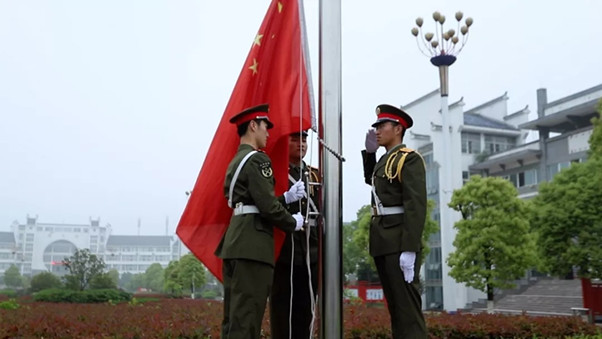 主持人宣布升旗仪式开始,国旗护卫队迈着铿锵有力的步伐向着升旗台走去。伴随着庄严嘹亮的国歌声,所有参加活动成员行注目礼,鲜艳的五星红旗冉冉升起,随风飘扬。我院学生代表赵文俊做国旗下讲话,并在最后带领大家重温入团誓词。