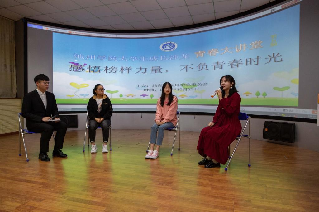 10月23日,beat365在线唯一官网登录大学生成长沙龙“青春大讲堂”第五期以“感悟榜样力量,不负青春时光”为主题在博雅南404教室如期举行,邀请了国家奖学金获得者2017级英语1班宋思雨、2017级动画班张奇和2018级财务管理1班余晴担任主讲。