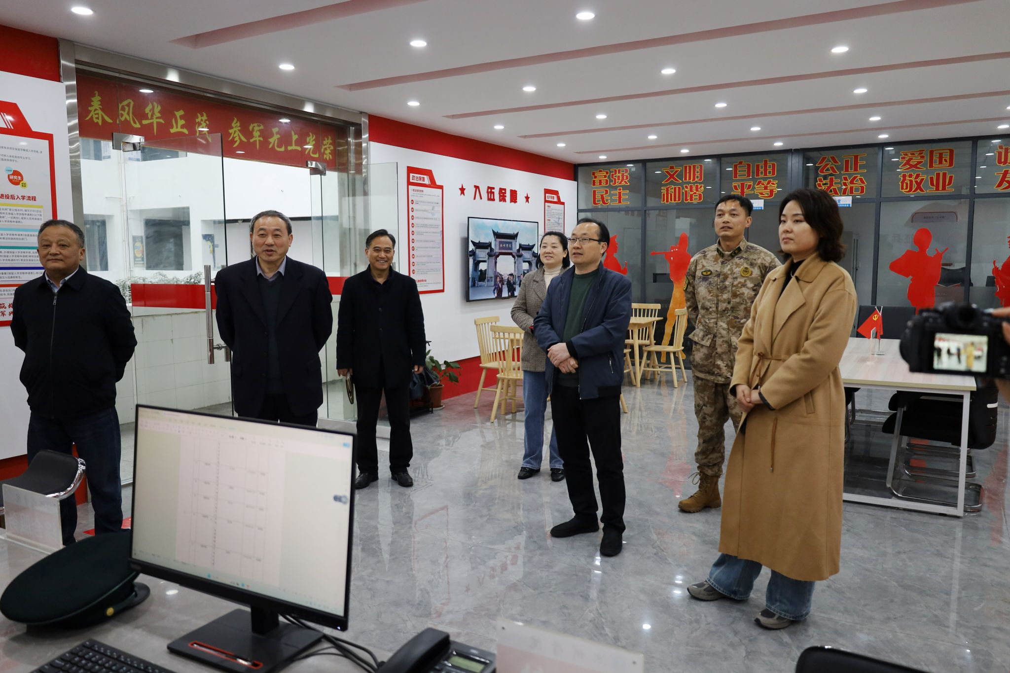 会后,综合考核组开展了个别谈话,查阅了学校2023年党建与发展相关工作资料,实地走访了艺术与教育学院、商学院实训中心、学生处一站式社区、家风文化馆、皖南民俗文化馆等,深入了解学校党建与发展开展情况和取得的成效。