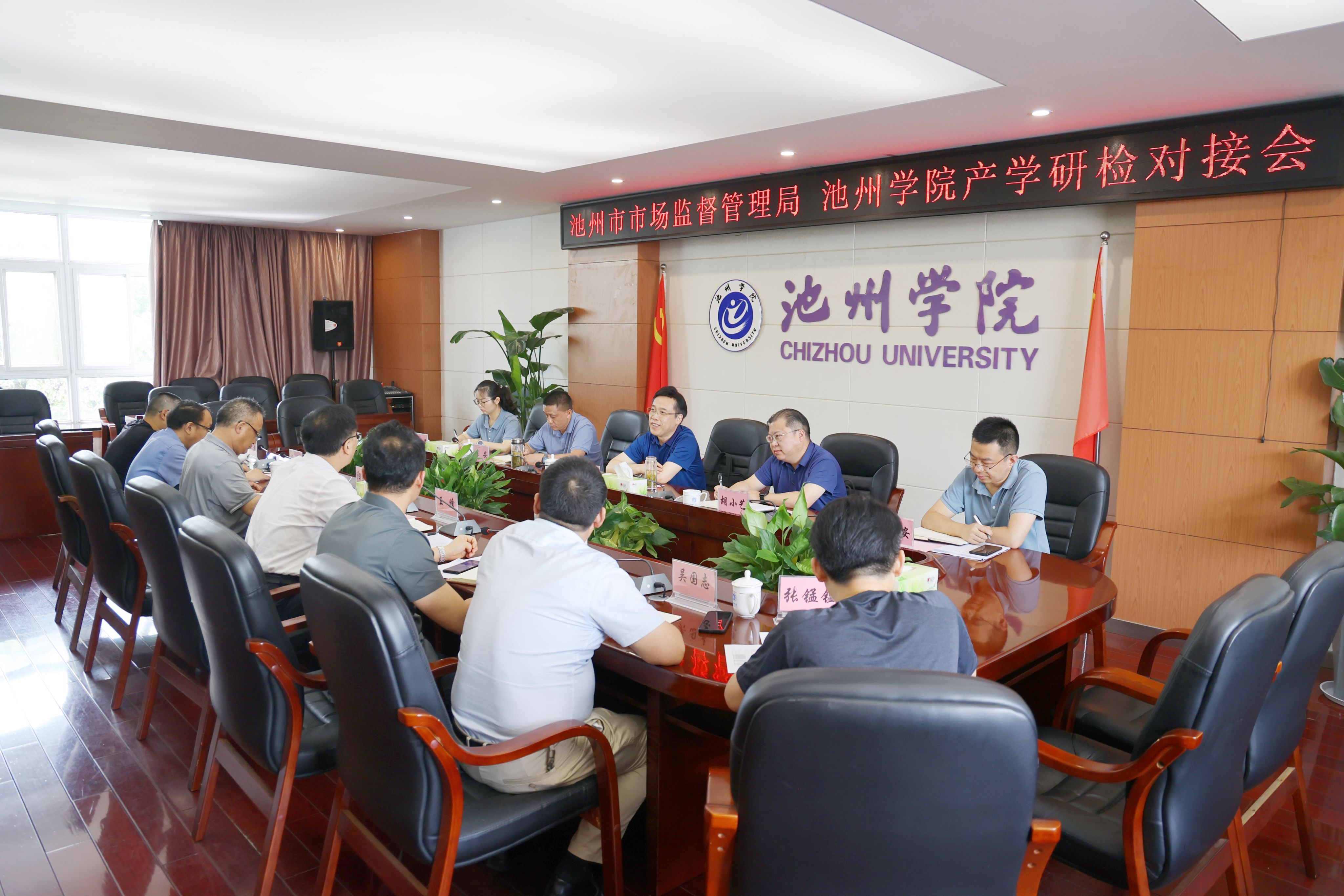 7月18日,池州市市场监督管理局与beat365官网举行产学研检对接会。校党委书记王峰,池州市市场监督管理局党组书记、局长周纳新出席并讲话。校党委委员、副院长阳光宁,江南新兴产业集中区管委会党工委委员、综合管理部部长胡小艺出席。