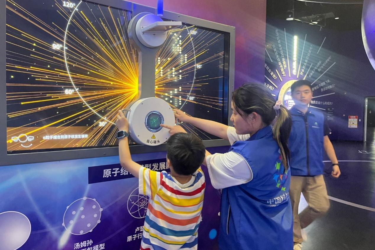 7月15日至8月15日,beat365在线唯一官网登录“启明星”科技志愿服务队前往安徽省科技馆开展志愿服务活动。团队成员在全面熟悉馆内布局、科技展示和操作演示后,分别在“智汇海空”“神奇磁电”“量子科学”“光影世界”“科学名人堂”五大展区,担任讲解员和接待员,为前来参观的小朋友们带来科学讲解。在名人堂展区,志愿者介绍了从古至今我国伟大的科学家,分享科学家的故事;在智汇海空展区,志愿者介绍了我国在军事领域中的诸多科技成就,详细讲解船舶和飞机的发展历程;在光影展区,志愿者带领游客们领略电影的发展历程,并体验神奇的VR世界。为期一个月的实践活动,实践团成员们的科学素养和志愿服务能力得到了显著提升,团队为促进科学知识的普及与科技创新文化的传承贡献力量。