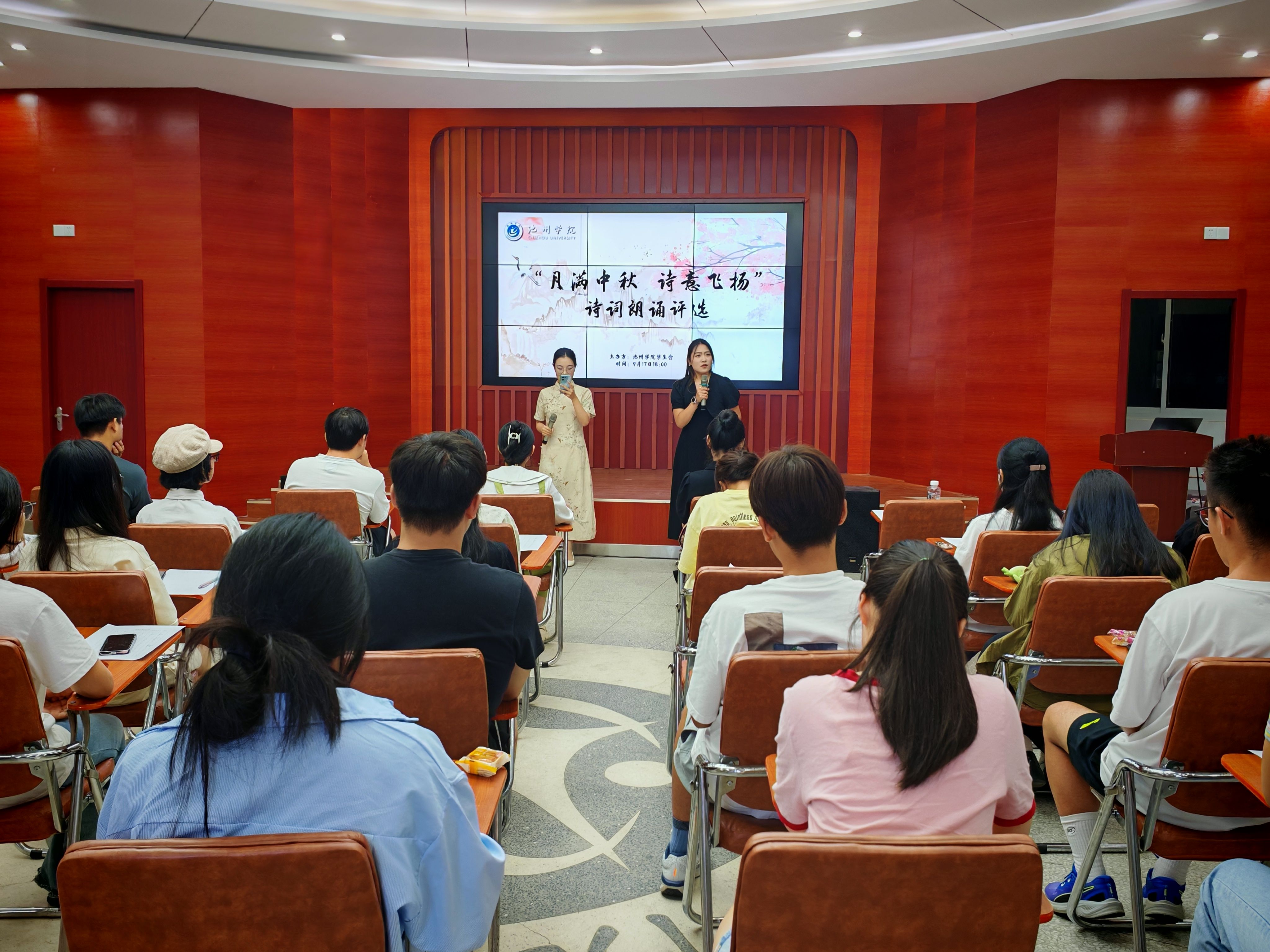诵明月之诗,吟中秋华章。9月17日,学校在大学生活动中心举办以“月满中秋·诗意飞扬”为主题的诗词朗诵大赛。活动现场,21组参赛选手用饱含深情的语调和细腻生动的表情,演绎诗词的婉约柔美与豪迈奔放,字里行间流露出对中秋佳节的美好祈愿与浓郁思乡之情,共同为中秋之夜增添了一抹诗意的光辉。