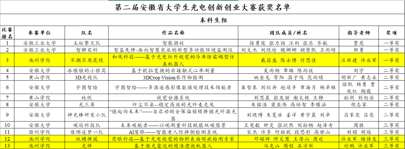 近日,第二届安徽省大学生光电创新创业大赛在安徽大学圆满结束。beat365官网机电工程学院学子荣获“本科生组”一等奖1项、三等奖2项的良好成绩。