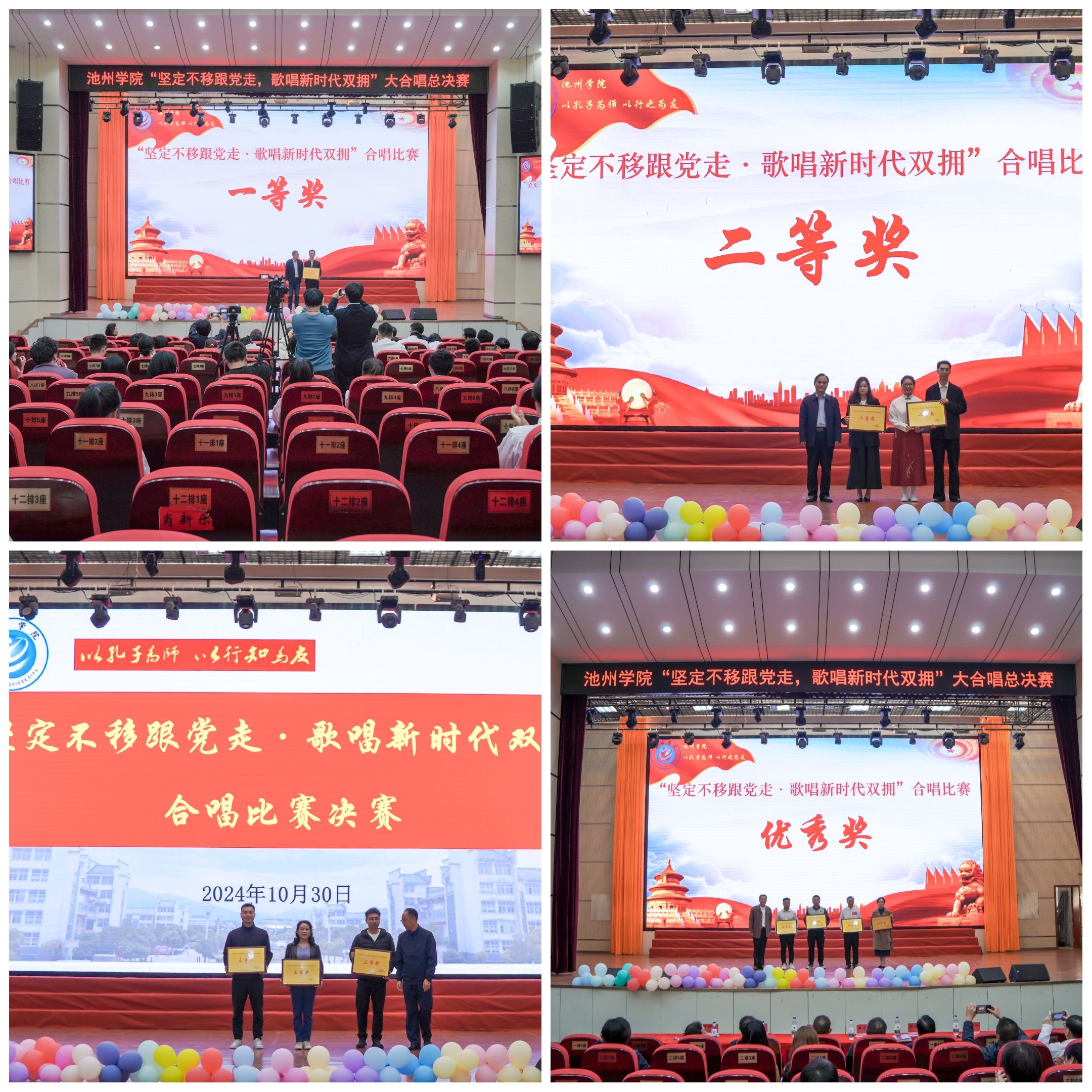 10月30日下午,为庆祝中华人民共和国75周年,大力弘扬 “双拥” 优良传统,beat365在线唯一官网登录“坚定不移跟党走,歌唱新时代双拥”合唱总决赛在学校大礼堂精彩上演。校党委委员、副校长阳光宁出席活动。池州市退役军人事务局四级调研员汪鸣驹受邀担任评委嘉宾。