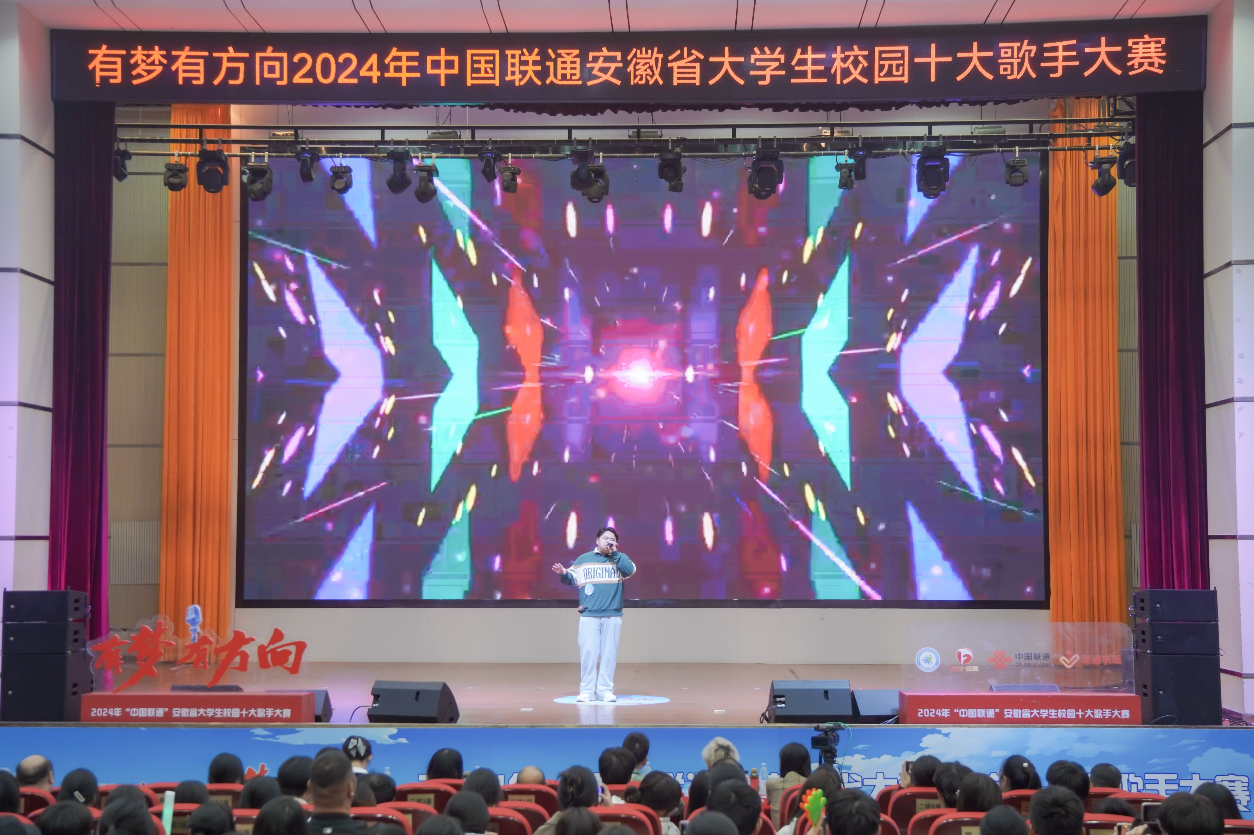 2024年“中国联通”安徽省大学生校园十大歌手大赛是安徽省高校青年学生间的音乐盛会,提供了一个尽情释放音乐才华,张扬青春魅力的舞台。此次复赛的成功举办,展示了青年学生积极向上的青春面貌,唱响了青春之歌,积极营造了浓郁的校园艺术文化氛围。