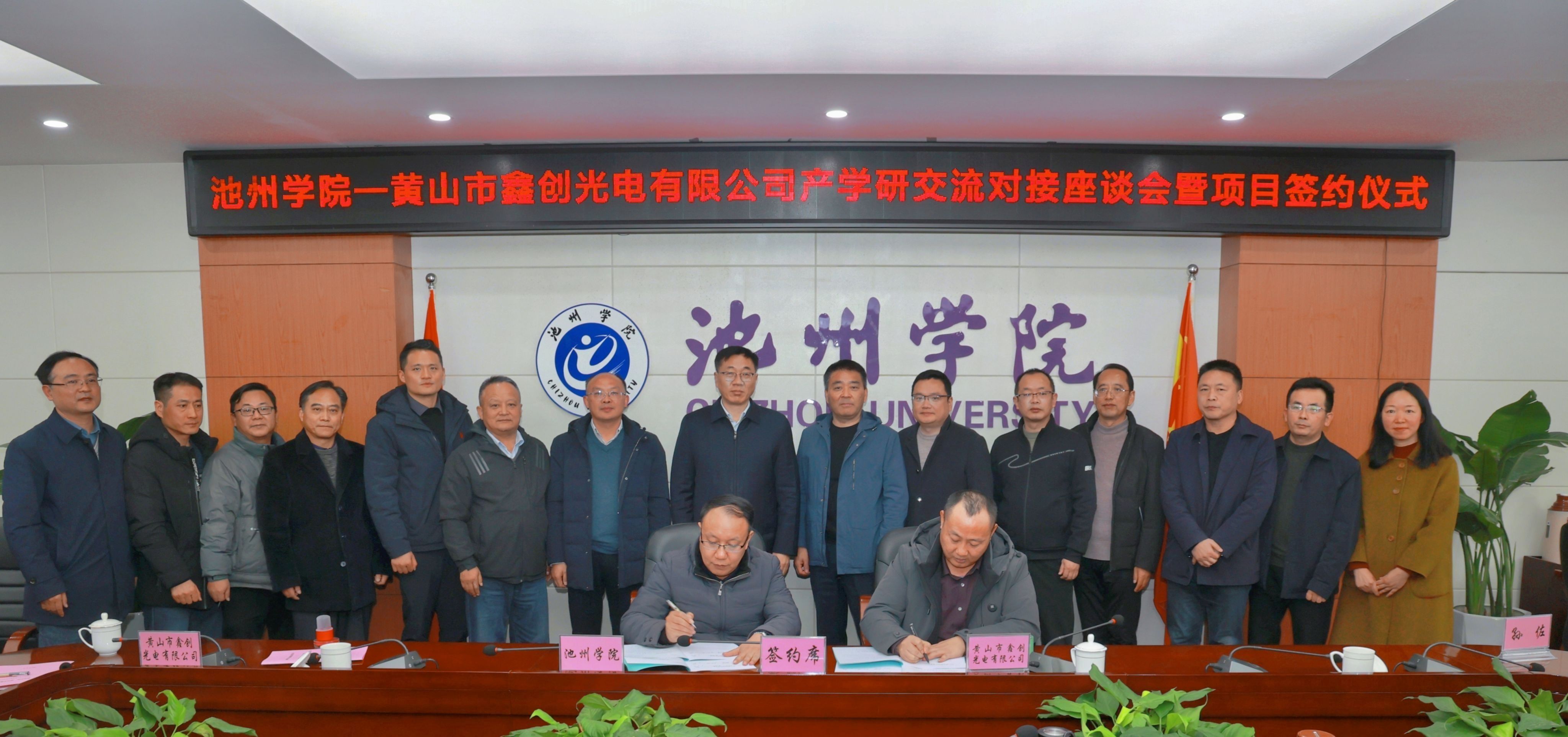 校企合作共谋未来,科技创新再谱新篇。12月9日,学校与黄山市鑫创光电有限公司举行产学研合作签约仪式,合作经费高达1000万元,学校产学研项目合作经费再创历史新高。党委书记王峰,黄山市黟县县委常委、副县长胡晓辉,黄山市鑫创光电有限公司董事长杜国晓,党委委员、副院长阳光宁,学术副院长吴征威出席。签约仪式由党委副书记、院长王先柱主持。