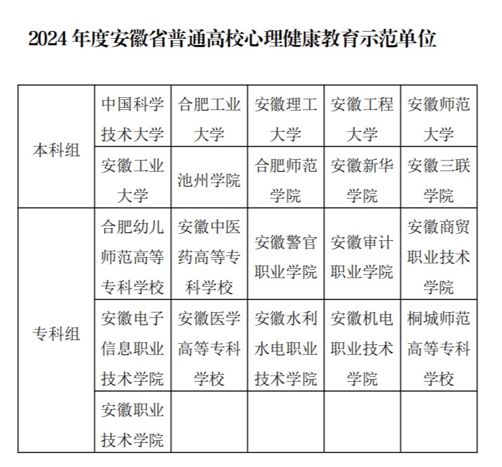 近日,安徽省教育厅公布了2024年度安徽省普通高校心理健康教育示范单位和优秀心理健康教师基本功大赛获奖名单(皖教秘学〔2025〕1 号),beat365官网获评安徽省普通高校心理健康教育示范单位,心理健康教育专职教师王雪飞获评优秀案例二等奖,兼职教师汪恭敬获评优秀论文二等奖,兼职教师谭甲文获评微课教学比赛三等奖。