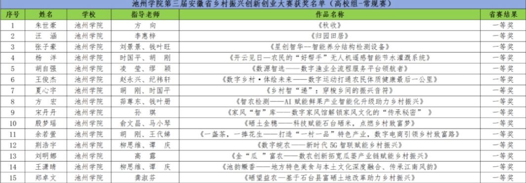 近日,第三届安徽省乡村振兴创新创业大赛成绩公布,学校共计获奖99项,其中一等奖15项、二等奖33项、三等奖38项,获奖质量等次和数量较往年均有提升。