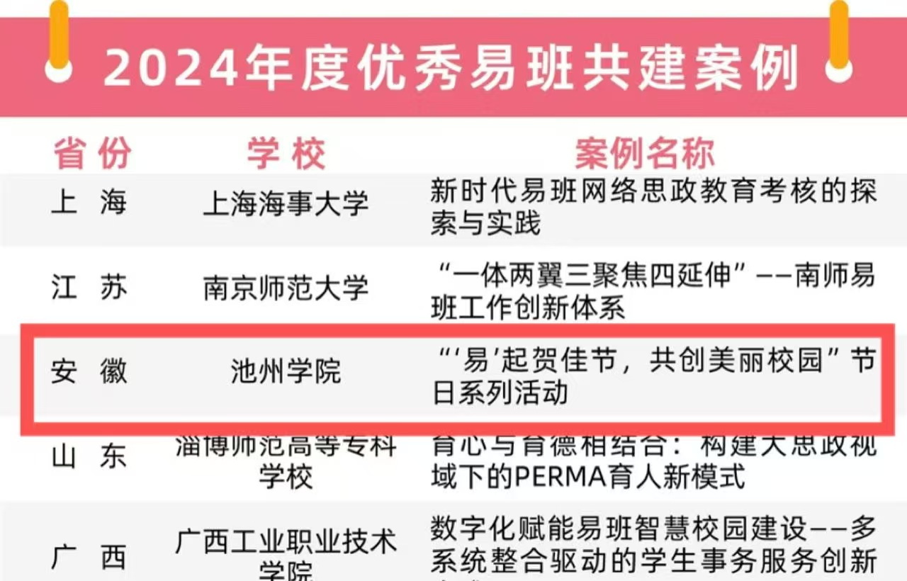 6月13日,教育部易班发展中心公布了2024年度全国易班共建优秀名单,beat365官网荣获“2024年度优秀易班共建案例”“2024年度优秀易班迎新案例”及“2024年度优秀易班共建高校”三项荣誉,充分展现出beat365官网易班在网络思想政治教育工作中的创新成果和实践成效。