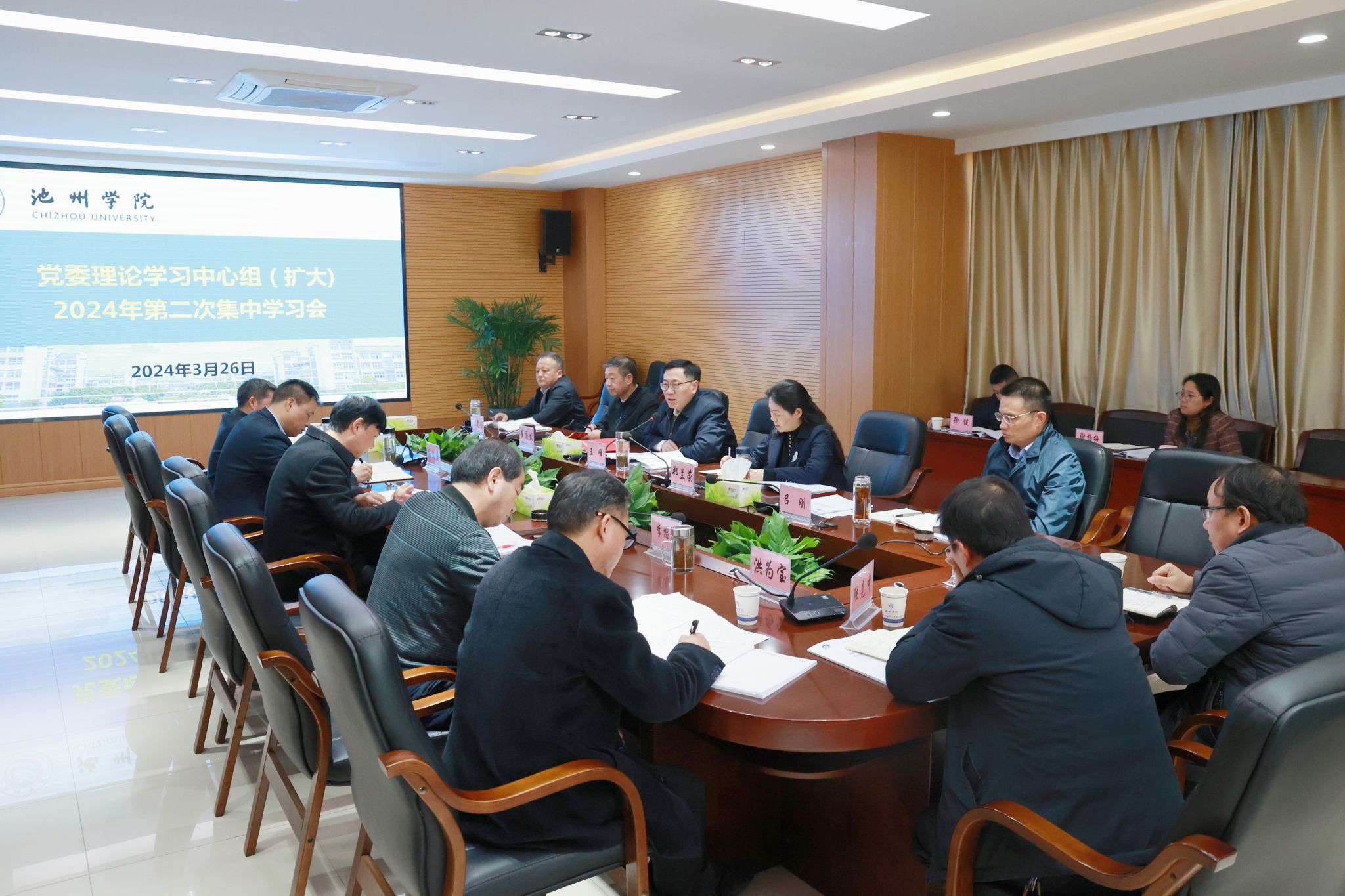 3月26日,校党委召开理论学习中心组(扩大)2024年第二次集中学习会。校党委书记王峰主持学习会并讲话。校领导郑兰荣、崔国发、阳光宁、吕刚参加学习会。