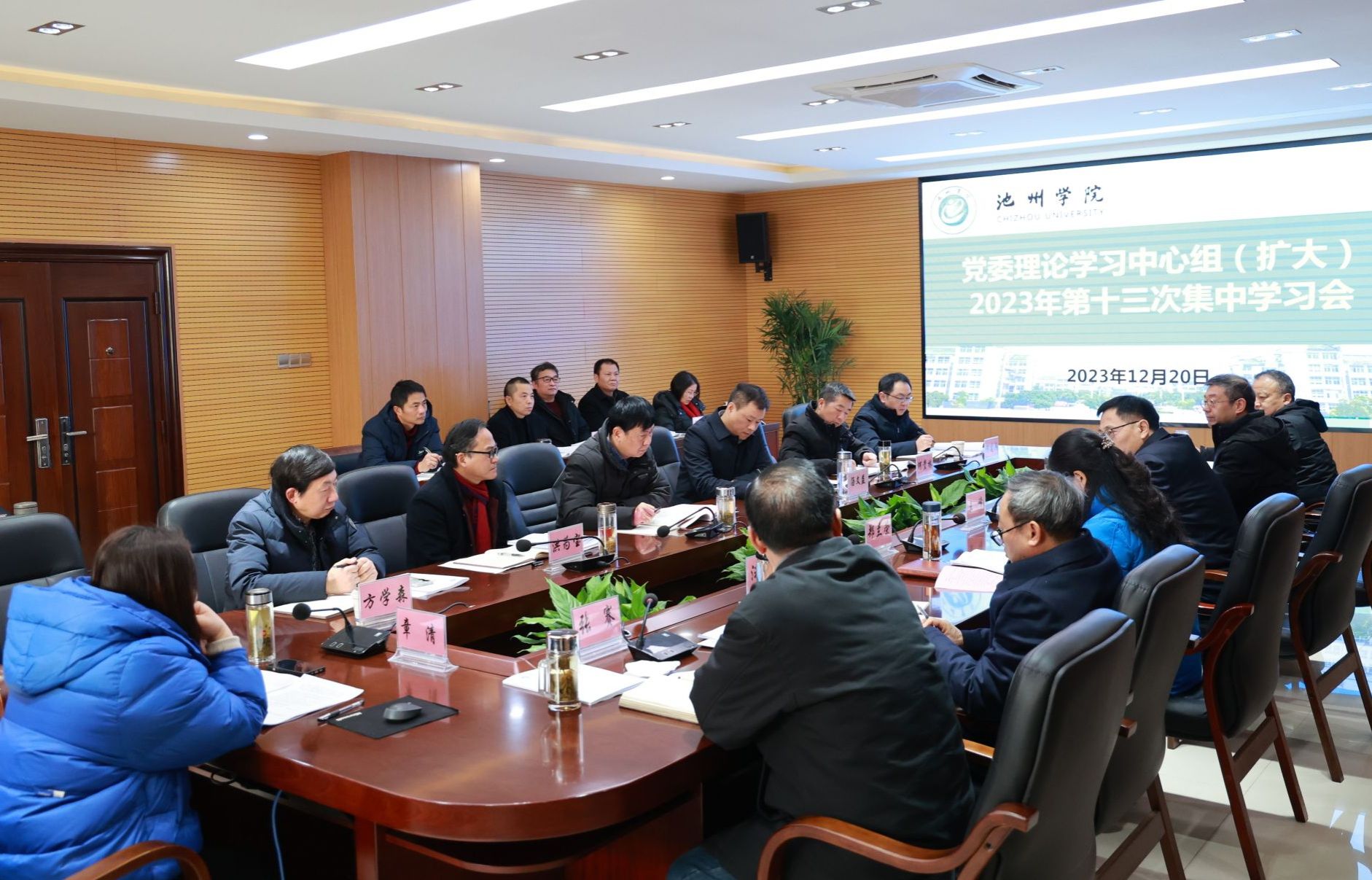 12月20日,校党委召开理论学习中心组(扩大)2023年第十三次集中学习会。党委书记王峰主持学习会并讲话。校领导郑兰荣、崔国发、汪海、阳光宁、张赛参加学习会。