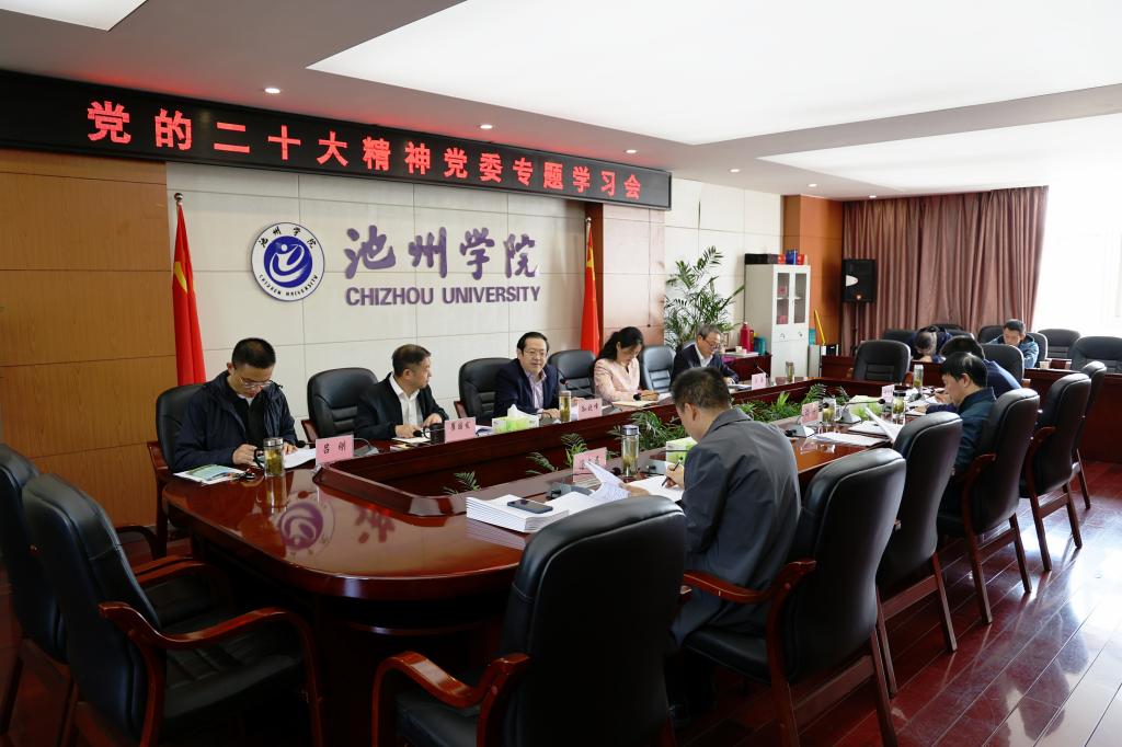 10月21日上午,校党委书记孙晓峰主持召开党委会,专题学习党的二十大精神。校党委班子成员郑兰荣、崔国发、汪海、吕刚、胡兵、汤文益出席会议。