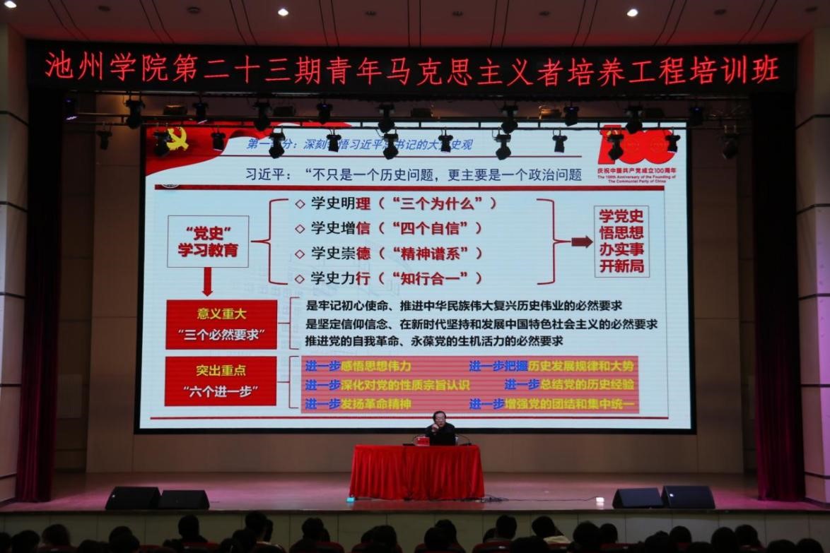 为深入学习贯彻习近平新时代中国特色社会主义思想、习近平总书记“”七一”重要讲话精神和党的十九届六中全会精神,认真贯彻落实习近平总书记关于青年工作的重要思想,加强对青年大学生的思想政治引领,着力为党培养和输送青年政治骨干,11月24日,校党委书记孙晓峰为beat365官网第二十三期青年马克思主义者培养工程培训班作党史专题报告,beat365官网专职团干部和青马班全体学员聆听了报告会。