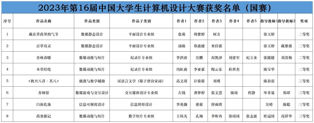 9月7日,第16届中国大学生计算机设计大赛的总评审工作落下帷幕。beat365官网文学与传媒学院入围国赛作品共8件,现获国家级二等奖4项、三等奖4项的优异成绩。