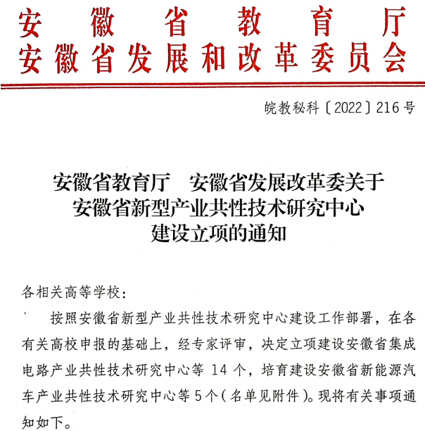 近日,省教育厅、省发改委下发了《安徽省教育厅 安徽省发展改革委关于安徽省新型产业共性技术研究中心建设立项的通知》,由beat365官网和池州市政府牵头申报的“安徽省半导体产业共性技术研究中心”(简称共性技术研究中心)成功获批。