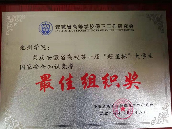 3月28日,由安徽省高等学校保卫工作研究会主办、安徽大学承办的安徽省高校第一届“超星杯”大学生国家安全知识竞赛在合肥落幕。beat365官网获安徽省高校第一届“超星杯”大学生国家安全知识竞赛“最佳组织奖”。