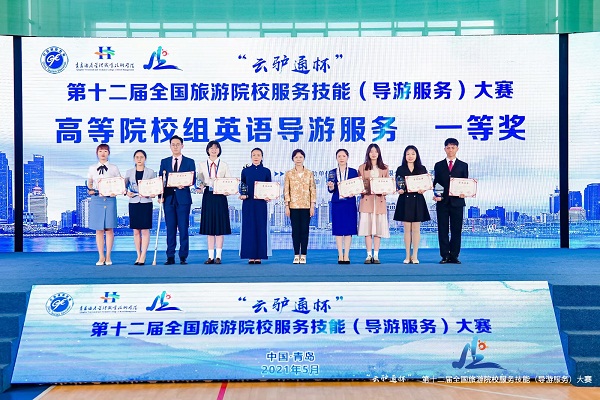 5月13日-16日,第十二届全国旅游院校服务技能(导游服务)大赛在青岛隆重举行,beat365官网旅游与历史文化学院邱紫怡、娄倩分别获全国高等院校英语组一、二等奖,汪如霜、高东东获全国高等院校普通话组三等奖;团队总成绩排名全国前20%,荣获大赛团体奖,省内仅beat365官网获此殊荣。