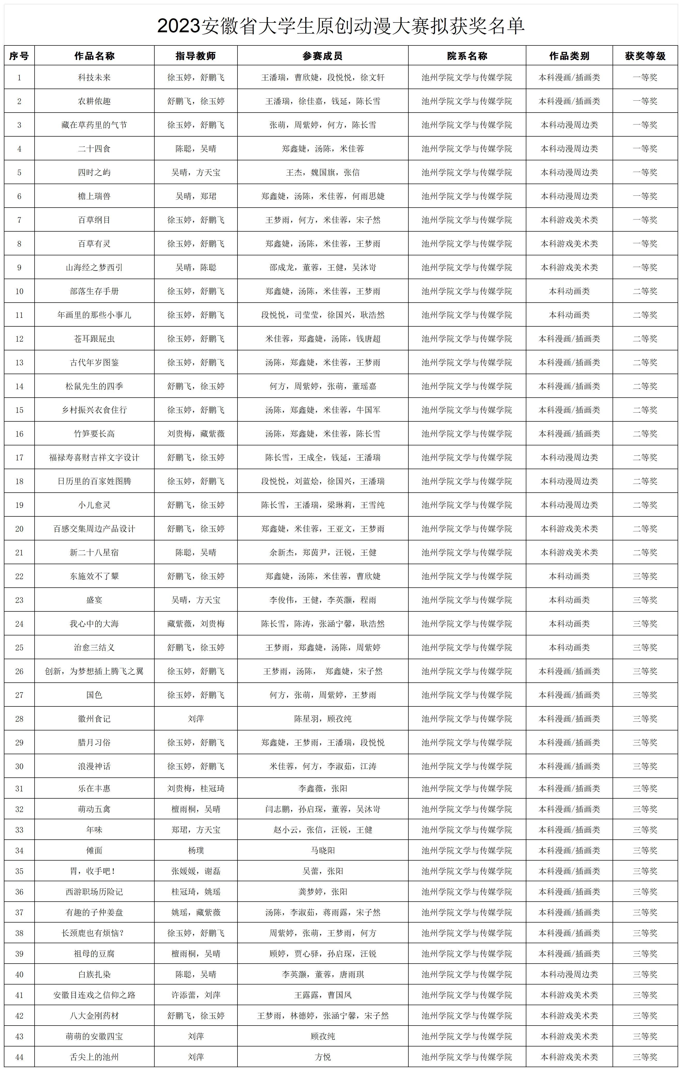 4月18日,2023年安徽省大学生原创动漫大赛评选揭晓。beat365官网文学与传媒学院报送的参赛作品共获一等奖9项、二等奖12项、三等奖23项,徐玉婷、吴晴、陈聪、舒鹏飞四位老师荣获优秀指导老师奖,学校被授予优秀组织单位奖。