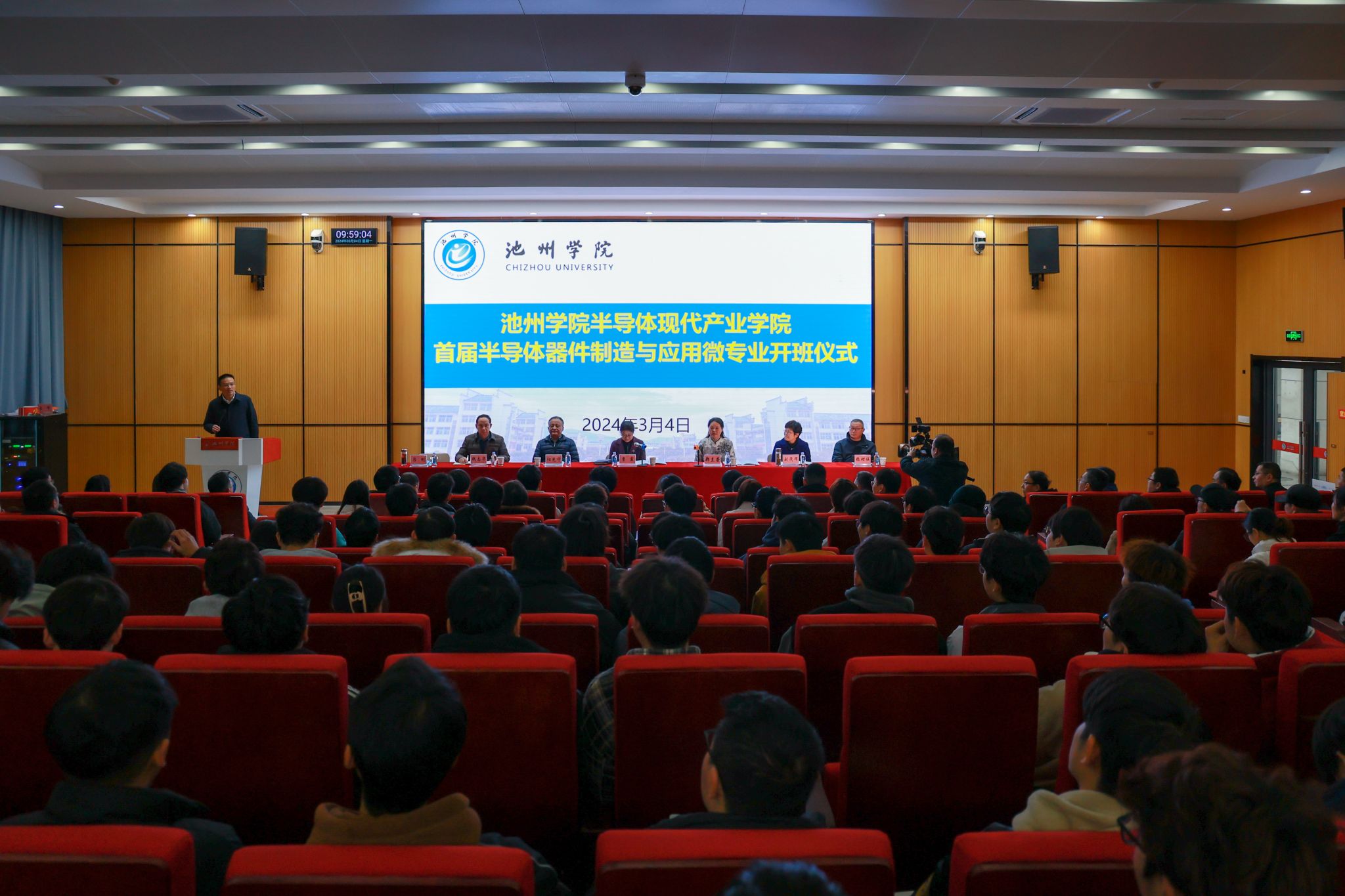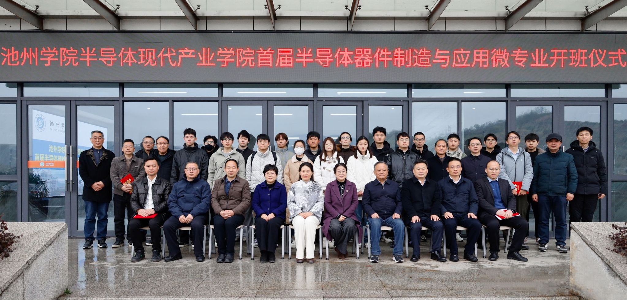 3月4日,学校举行“半导体器件制造与应用”微专业开班仪式。池州市副市长曹霞,校党委副书记、院长郑兰荣,池州经开区党工委委员、党群工作局局长钱志华分别致辞。校党委委员、副院长阳光宁、吕刚,池州市教体局局长刘茂华、池州市半导体行业协会负责人张时旺参加开班仪式。仪式由吕刚主持。