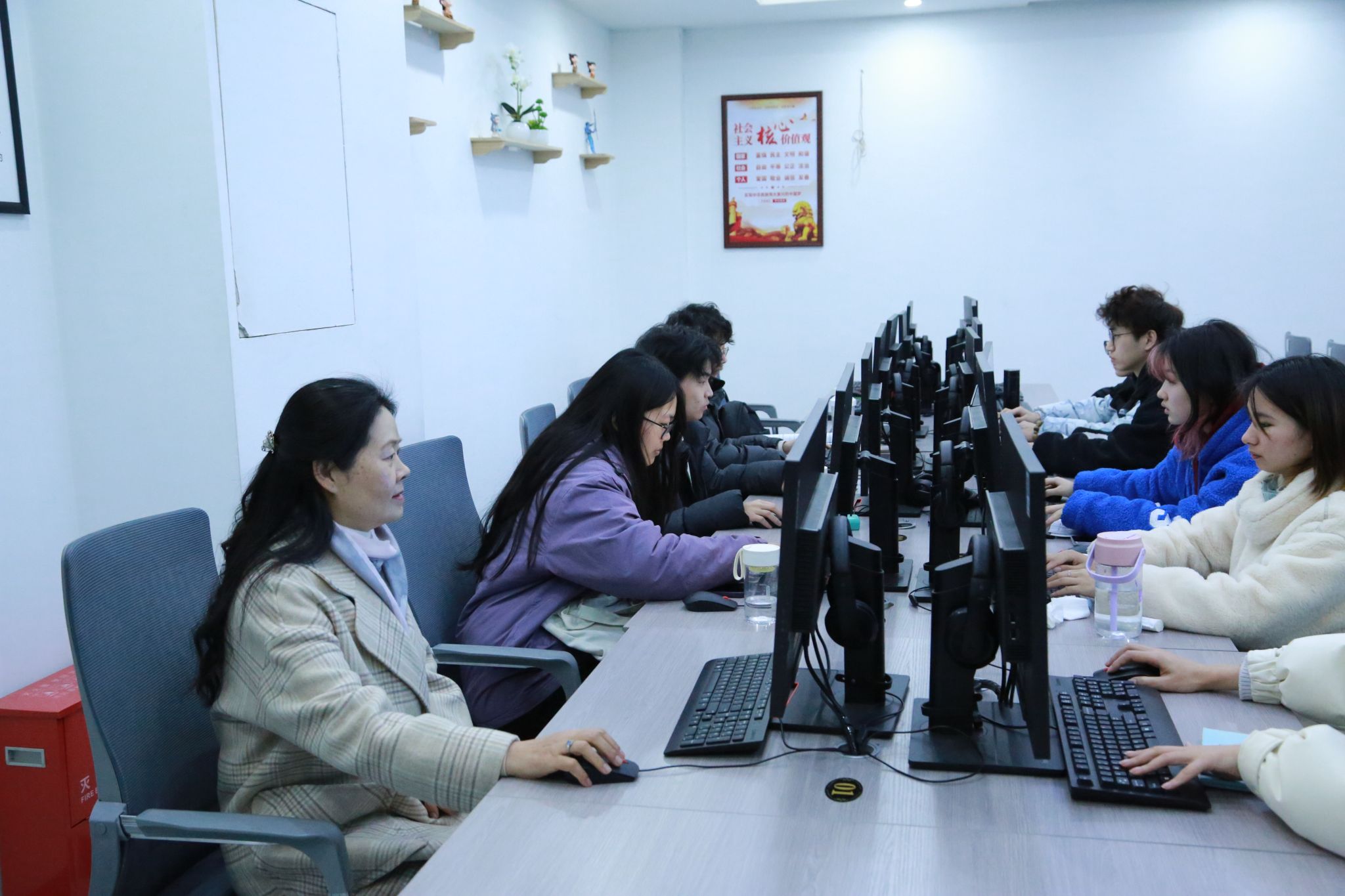 郑兰荣分别前往商学院、文学与传媒学院的实验实训场所进行走访,详细了解实验课教学准备、实验课开出情况,检查实验实训场所的教师上课和学生出勤情况。