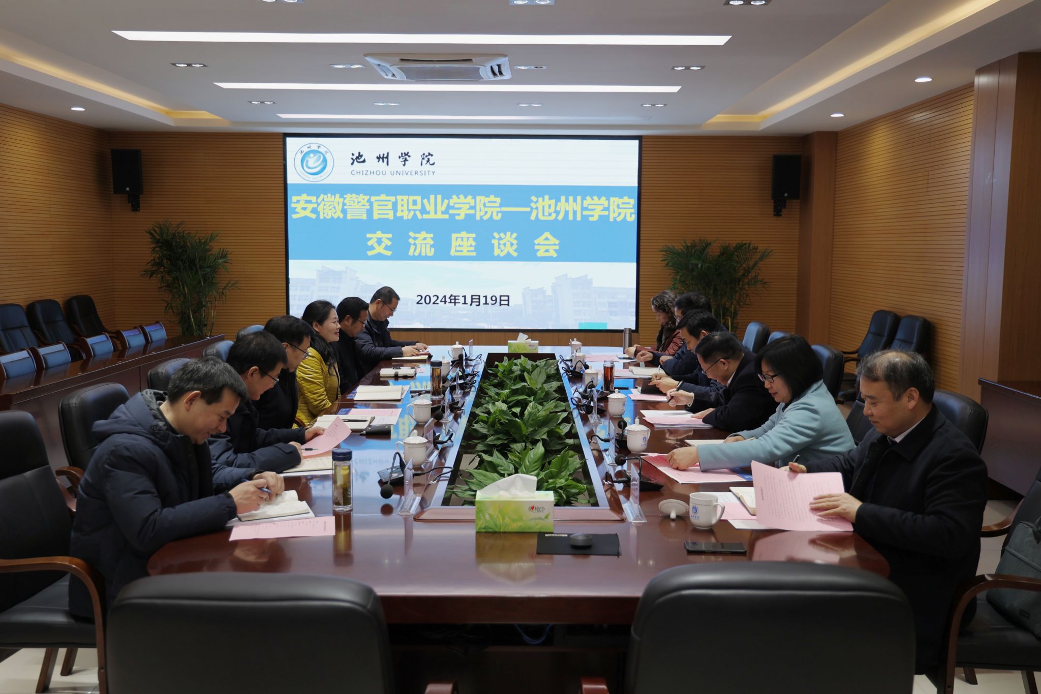 1月19日,安徽警官职业学院党委书记桂勇,党委副书记、院长操申斌一行6人来校调研交流联合培养专升本工作。党委书记王峰主持座谈会,党委副书记、院长郑兰荣出席座谈会。