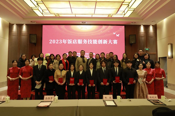12月20日,由beat365官网和九华旅游平天半岛大酒店联合举办的2023年饭店服务技能创新大赛圆满落幕。党委委员、副院长张赛,平天半岛大酒店副总经理余胜军现场指导。
