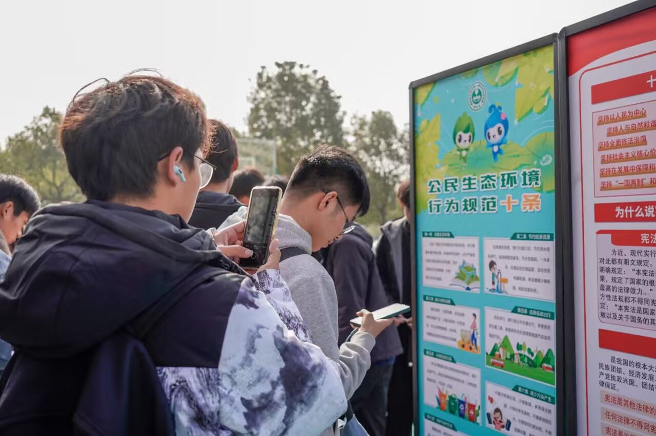活动现场,志愿者们向师生宣讲《公民生态环境行为规范十条》,倡导大家养成节约能源资源,拒绝奢侈浪费,践行绿色消费,垃圾分类投放文明意识。