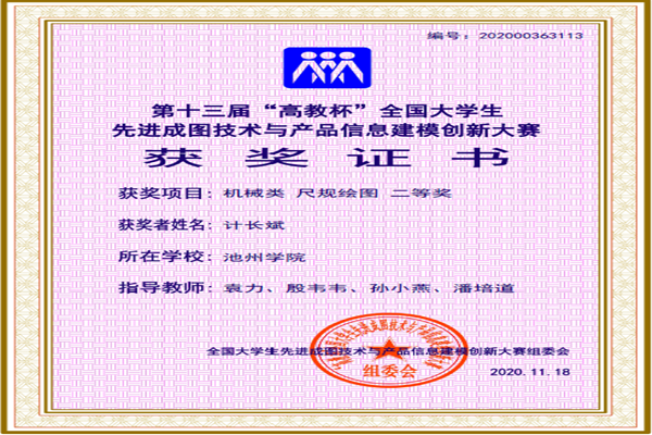 近日,beat365官网机电工程学院学生计长斌、亓善友、李炳舜、刘磊、王飞行5位同学组成的机械类团队(指导教师:袁力、殷韦韦、孙小燕、潘培道),在第十三届“高教杯”全国大学生先进成图技术与产品信息建模创新大赛中荣获机械类尺规绘图二等奖1项、尺规绘图三等奖1项、计算机建模三等奖2项、图学基础知识三等奖3项。