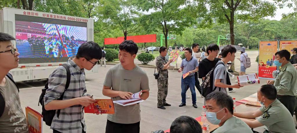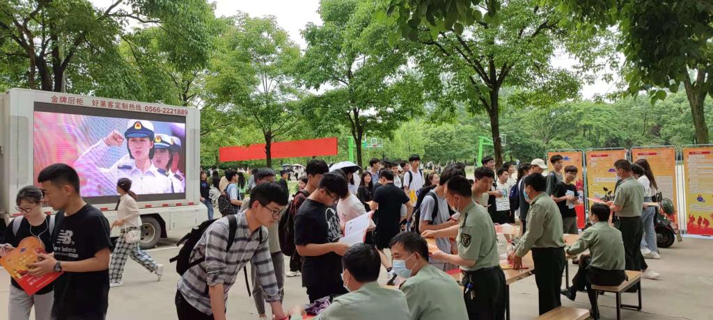 通过悬挂横幅、张贴海报,宣传视频滚动播放、发放征兵宣传手册等方式营造浓郁的入伍宣传氛围。 宣讲工作人员现场还分别从大学生应征报名流程、体检政考、优待政策以及报名注意事项等进行了详细说明,并对同学们提出的入伍问题进行了全面解答。