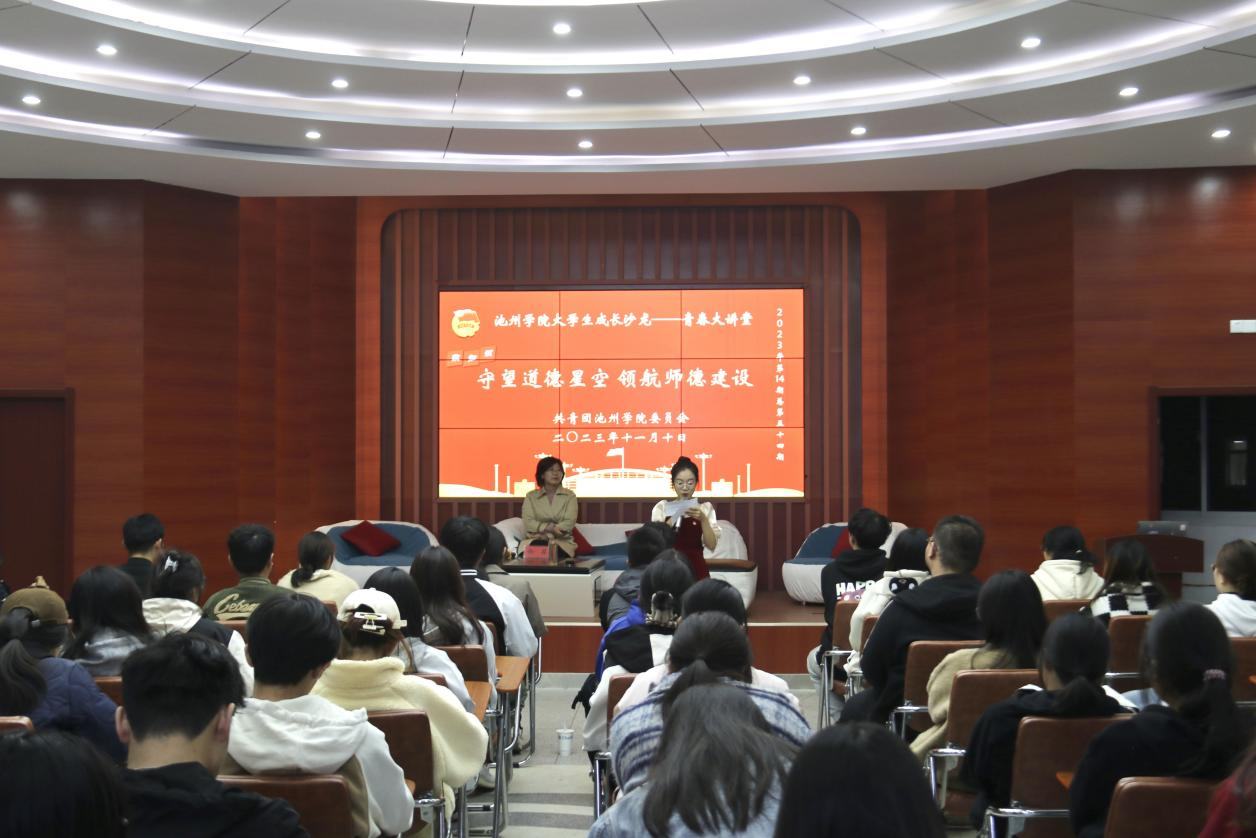 11月10日晚,beat365在线唯一官网登录大学生成长沙龙“青春大讲堂”2023年第十四期(总第五十四期)“致知识”在大学生活动中心举行。本期大讲堂以“守望道德星空 领航师德建设”为主题,邀请党委教师工作部副部长、人事处副处长徐菲老师作嘉宾,分享自己对师德师风的理解和感悟。