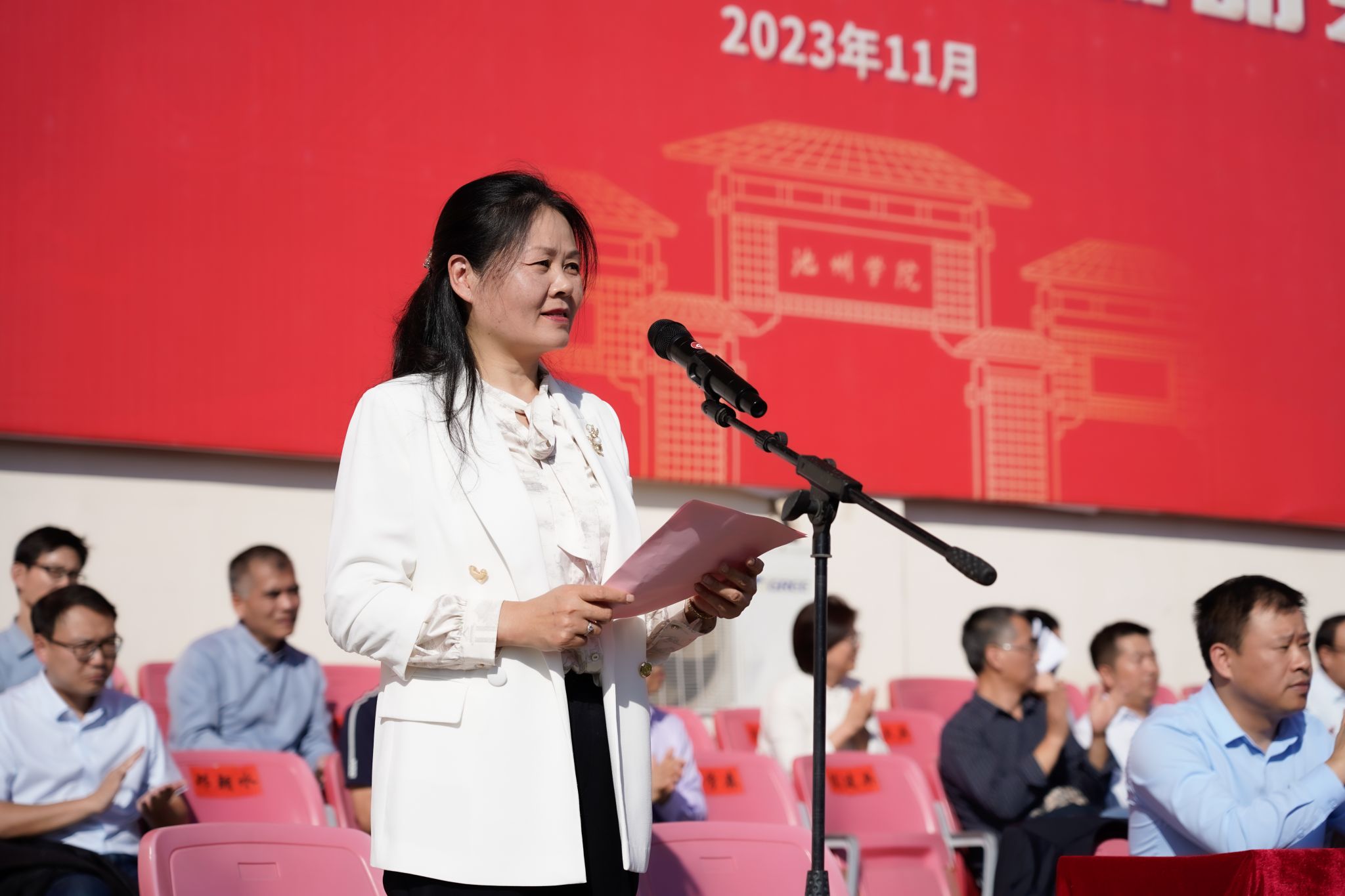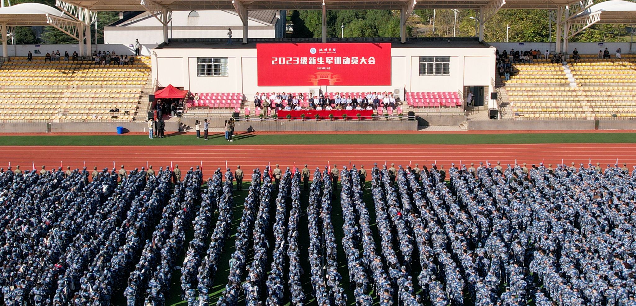 各部门主要负责同志、各二级学院党政主要负责同志、校军训领导小组全体成员、新生辅导员以及2023级全体新生参加了活动。
