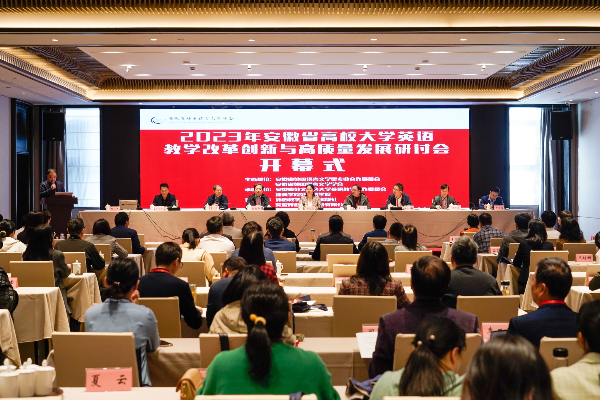 10月20-22日,安徽省高校大学英语教学改革创新与高质量发展研讨会在beat365官网成功举办。党委副书记、院长郑兰荣出席开幕式并讲话。安徽省外国语言文学类专业合作委员会主任、安徽省外国语言文学会会长朱跃教授,安徽省外文学会大学英语教学工作委员会主任委员、安庆师范大学外国语学院院长王先荣教授先后致辞。来自全省40多所高校120余名参会者参加了会议。