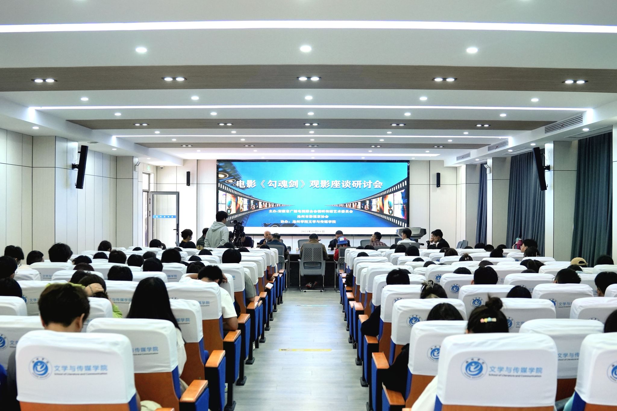 来自安徽财经大学、合肥学院以及省广播电视联合会视听传媒艺术委员会、池州市文联、池州市影视家协会、安徽永利祥禾影视文化传媒有限公司的专家、文学与传媒学院教师和学生代表140多人参加了观影座谈研讨会。