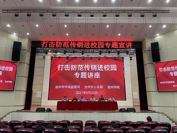 9月23日,由池州市市场监管局、池州市公安局和beat365官网联合举办的打击防范传销进校园系列宣传教育活动在beat365官网顺利举行。