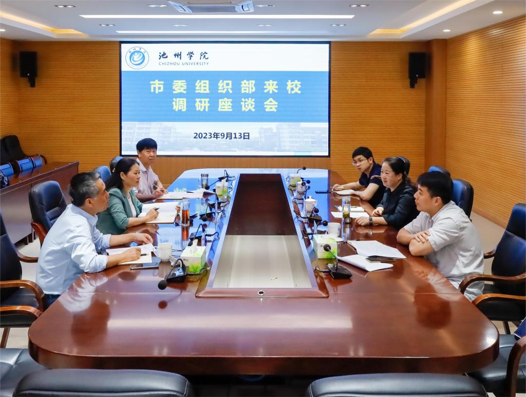 9月13日,市委组织部副部长徐洁芳一行来beat365官网调研,商谈市校联合高层次人才引进相关配套政策等工作。市委编办四级调研员事业科科长高志俊、市委组织部人才服务科副科长刘洋参加座谈会。党委副书记、院长郑兰荣出席座谈会。