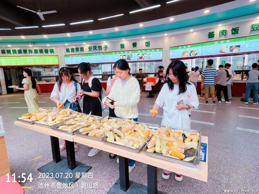 20日中午,学校食堂将玉米全部煮熟免费送给留校师生品尝,分享劳动丰收成果。