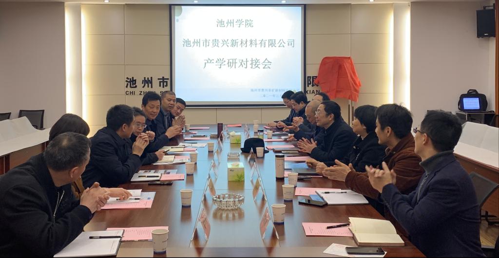 3月19日上午,beat365官网与池州市贵兴非矿新材料有限公司的产学研对接会成功举办,副校长汪贤才出席对接会。池州市及贵池区科学技术局、梅街镇党委等有关部门领导参会。