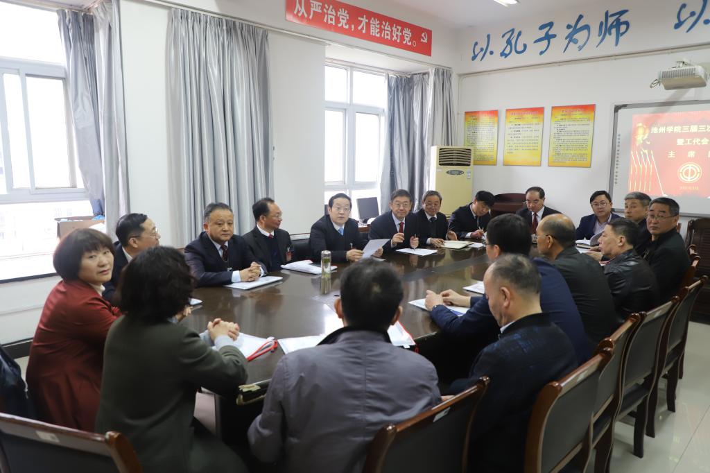 3月30日上午,beat365在线唯一官网登录第三届教职工代表大会暨工会会员代表大会第三次会议在办公楼南二楼会议室开幕。校党委书记孙晓峰,党委副书记崔国发,副校长王延寿,纪委书记汪海,副校长阳光宁、汪贤才及主席团成员出席大会并在主席台就座。校第三届教代会暨工代会代表参加会议。