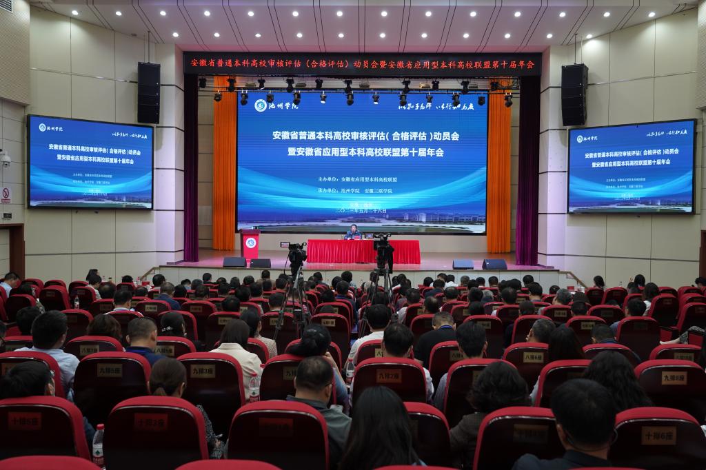 5月26日,安徽省普通本科高校审核评估(合格评估)动员会暨安徽省应用型本科高校联盟第十届年会在beat365官网隆重召开。省教育厅副厅长储常连,联盟常任主席单位合肥学院副院长陈秀,上届轮值主席单位安徽三联学院党委书记王光虎,beat365在线唯一官网登录党委副书记、院长郑兰荣,beat365在线唯一官网登录党委委员、副院长吕刚出席会议。省教育厅相关处室领导,24所联盟高校及应邀参会的部分省内高校校领导、教务处处长、发展规划处处长,联盟秘书处和beat365在线唯一官网登录师生代表共计200余人参加会议。