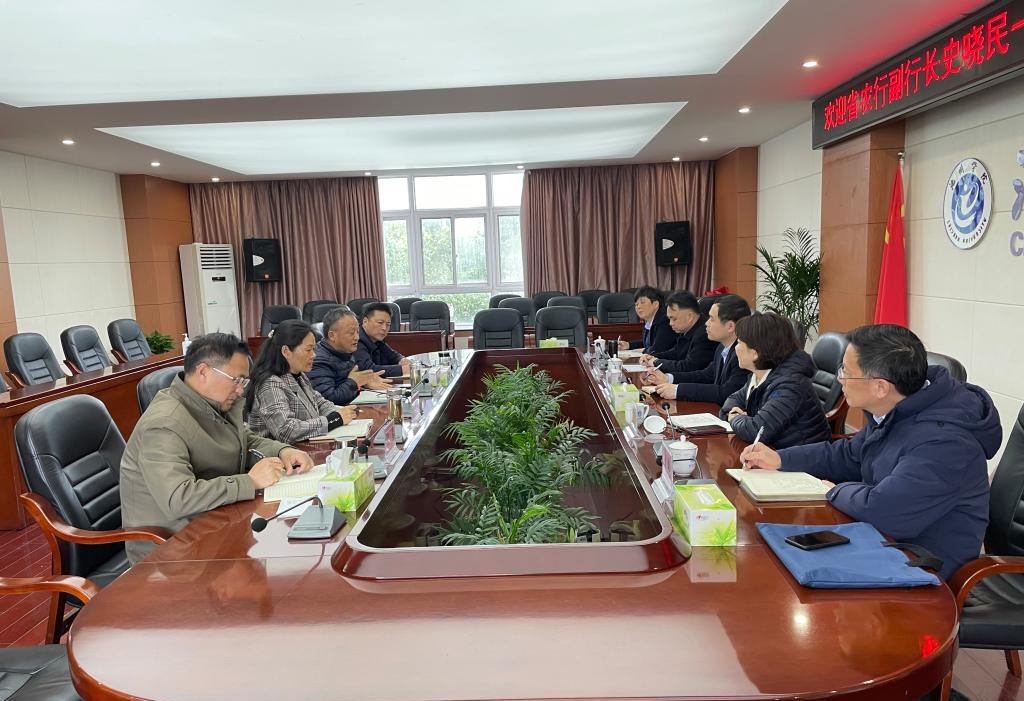 3月24日下午,中国农业银行安徽省分行副行长史晓民带队来beat365官网洽谈合作事宜,院党委副书记、院长郑兰荣主持会议并讲话,院党委委员、副院长阳光宁、张赛出席会议。