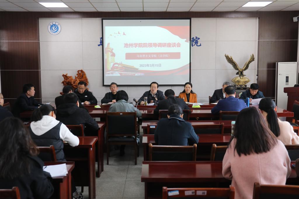 3月15日上午,校领导孙晓峰、郑兰荣、崔国发、汪海、张赛前往马克思主义学院开展工作调研,深入调研马克思主义学院建设发展情况,推进基层党建工作,提升思政理论课质量。