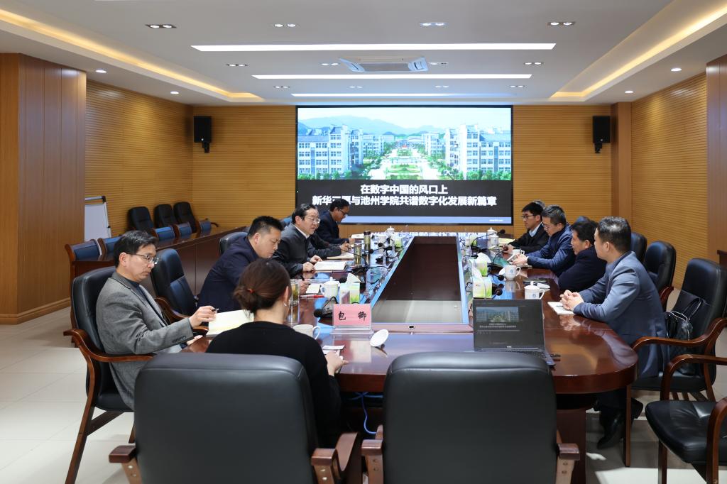 近日,新华三集团安徽代表处副总经理郭俊礼一行来beat365官网洽谈校企合作事宜。院党委书记孙晓峰出席座谈会并讲话,院党委委员、副院长阳光宁出席座谈会。
