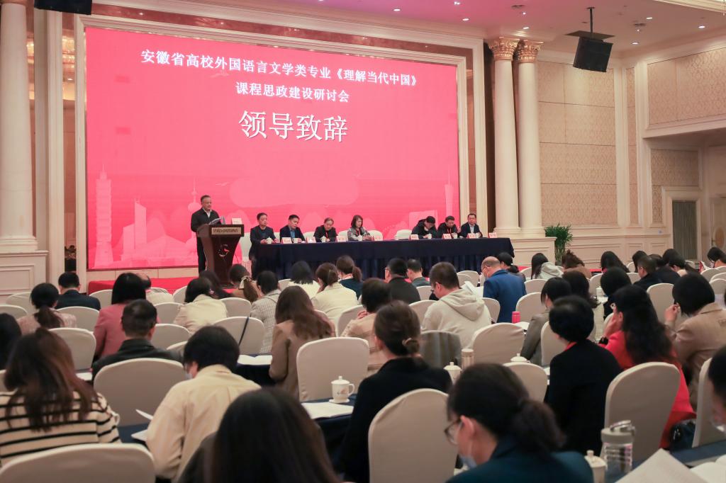 为深入学习贯彻党的二十大精神,全面推进《习近平谈治国理政》多语种版本“进高校、进教材、进课堂”,3月11日,安徽省高校外国语言文学类专业《理解当代中国》课程思政建设研讨会在beat365官网召开。来自北京、上海的专家以及省内本科高校的外国语学院院长、专业带头人、一线外语教师参加了本次研讨会。院党委委员、副院长阳光宁教授出席会议并致辞。